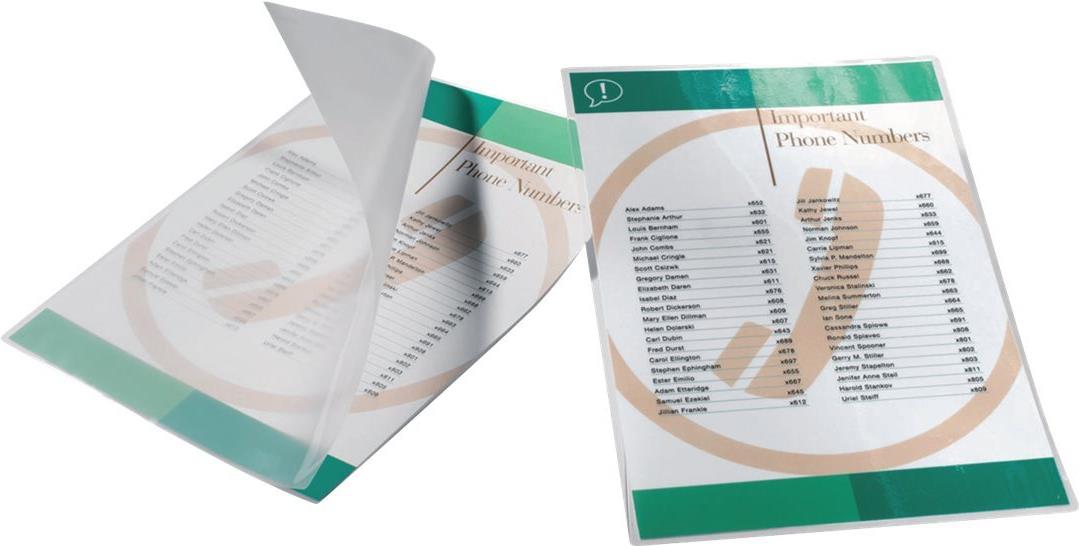 Laminiertaschen sind eine praktische Lösung im Alltag zum Schutz und zur Aufwertung von häufig verwendeten Dokumenten, wie Präsentationen, Referenzlisten, Produktblättern oder Fotos. Geeignet für alle A3-Laminiergeräte. Bis zu 30 % schnelleres Laminieren, dank der Hilfslinien, die das Ausrichten der Dokumente erleichtern und Mikron-Symbole die Temperatureinstellung. Pfeile zeigen die Richtung an, in der die Dokumente eingeführt werden müssen. 2 x 75 Mikron, Format A4, 100 Stück.Hauptmerkmale