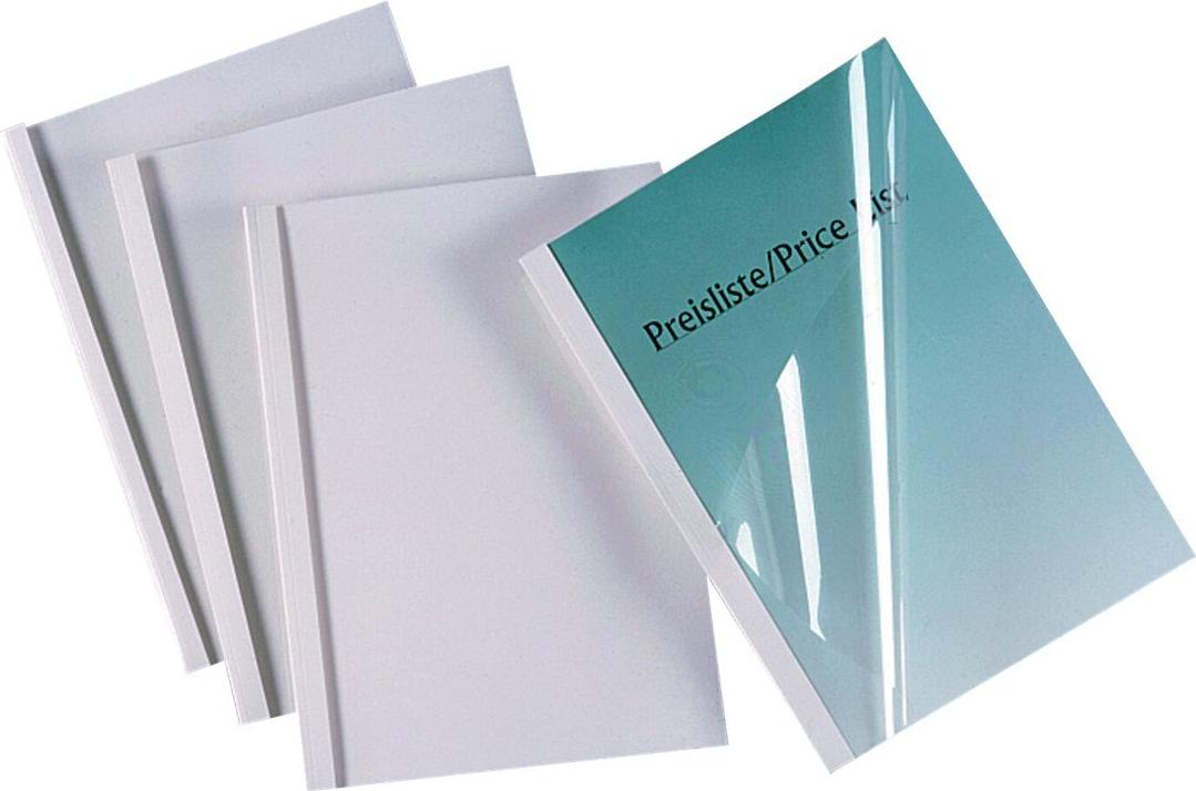 Mit den stabilen Standard Thermobindemappen sind Ihre Dokumente perfekt gebunden. Das transparente Deckblatt aus PVC bringt die Titelseite voll zur Geltung, die stabile Rückseite aus 240 g/m starkem seidenweißen Karton sorgt für Stabilität. A4, 30 mm, 50 Stück.