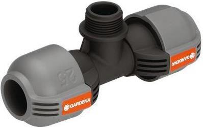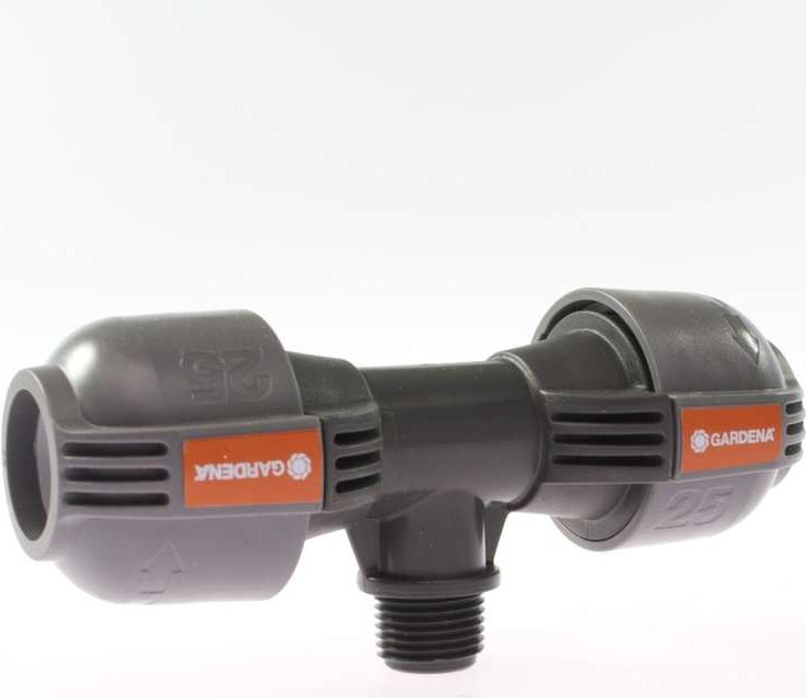 Das Gardena T-Stück 25 mm x ¾"-Außengewinde dient - im Rahmen des Gardena Sprinklersystems - zum Anschluss des Turbinen-Versenkregners T 380 und des Versenk-Viereckregners OS 140 im Rohrverlauf. Durch die patentierte "Quick & Easy"-Schnellverbindungstechnik erfolgt die Rohrmontage oder -demontage werkzeuglos durch einfaches Drehen der Verschraubung um 140°. Für den wasserdichten, sicheren Betrieb ist die Gewindeverbindung des T-Stücks selbstdichtend.