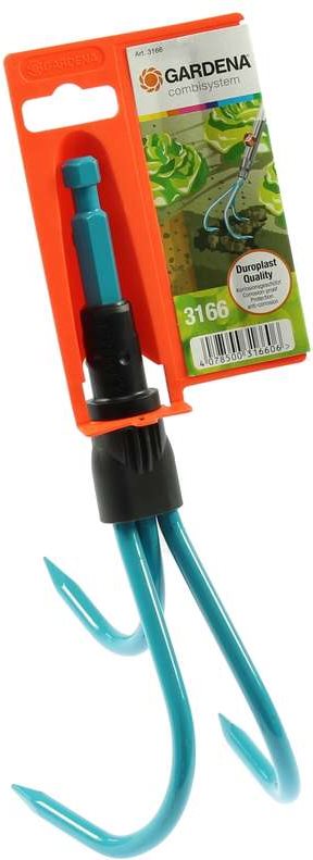 Der Gardena combisystem-Grubber eignet sich mit seinen drei stabilen Zinken optimal zum wurzelschonenden Lockern und Lüften des Bodens. Der Grubber hat eine Arbeitsbreite von 9 cm und ist bestens auch für steinige Böden und eng stehende Kulturen geeignet. Das Gerät passt zu allen Gardena-combisystem-Stielen, wobei Gardena eine Stiellänge von 130 cm empfiehlt, abhängig von der Körpergröße.