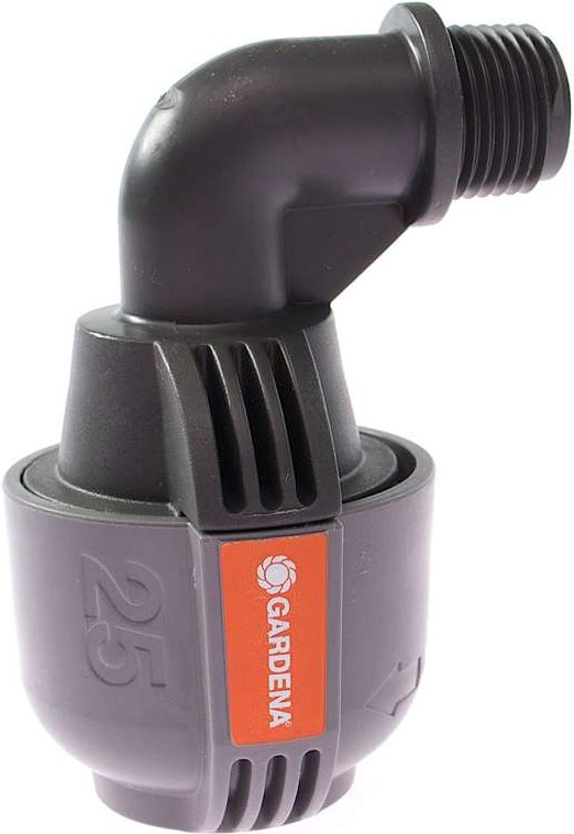 Das Gardena L-Stück 25 mm x 3/4"-Außengewinde dient - im Rahmen des Gardena Sprinklersystems - zum Anschluss des Turbinen-Versenkregners T 380, des Versenk-Viereckregners OS 140 und des Vielflächen-Versenkregners AquaContour automatic am Rohrende. Durch die patentierte "Quick & Easy"-Schnellverbindungstechnik erfolgt die Rohrmontage oder -demontage werkzeuglos durch einfaches Drehen der Verschraubung um 140°. Für den wasserdichten, sicheren Betrieb ist die Gewindeverbindung des L-Stücks selbstdichtend.