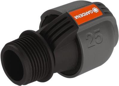 Der Gardena Verbinder 25 mm x 1"-Außengewinde dient - im Rahmen des Gardena Sprinklersystems - zum Rohranschluss an die Gardena Bewässerungsventile. Mit dem Verbinder kann auch ein Direktanschluss der Beregnungsanlage an die Hausinstallation durchgeführt werden. Durch die patentierte "Quick & Easy"-Schnellverbindungstechnik erfolgt die Rohrmontage oder -demontage werkzeuglos durch einfaches Drehen der Verschraubung um 140°. Für den wasserdichten, sicheren Betrieb ist die Gewindeverbindung des Verbinders selbstdichtend.