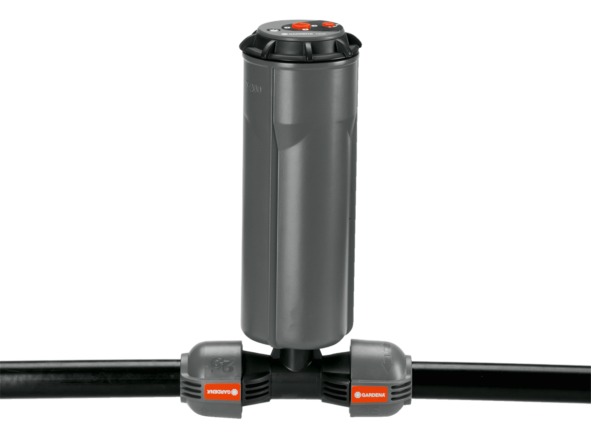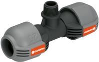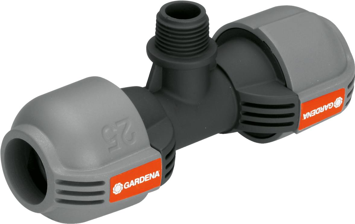 Das Gardena T-Stück 25 mm x ½"-Außengewinde dient - im Rahmen des Gardena Sprinklersystems - zum Anschluss des Versenkregners S 80 sowie der Turbinen-Versenkregner T 100 und T 200 im Rohrverlauf. Durch die patentierte "Quick & Easy"-Schnellverbindungstechnik erfolgt die Rohrmontage oder -demontage werkzeuglos durch einfaches Drehen der Verschraubung um 140°. Für den wasserdichten, sicheren Betrieb ist die Gewindeverbindung des T-Stücks selbstdichtend.