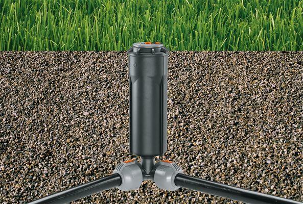 Der Gardena Turbinen-Versenkregner T 380 ist - im Rahmen des Gardena Sprinklersystems - sehr gut für die Bewässerung von mittelgroßen Rasenflächen bis 380 m² geeignet. Die Wurfweite ist zur Anpassung an die jeweilige Fläche variabel zwischen 6 und 11 m regulierbar. Der zu beregnende Sektor kann am Regnerkopf - ohne Werkzeug - stufenlos von 25 bis 360° eingestellt werden. So können Flächen von ganz schmalen Sektoren bis zum Vollkreis bewässert werden. Durch die Memoryfunktion findet der Regner auch bei absichtlichem Verdrehen des Regnerkopfes automatisch den ursprünglich eingestellten Sektor wieder, so dass immer der richtige Bereich beregnet wird. Für die flexible Bewässerung sorgen vier Düsen mit unterschiedlichem Wasserdurchfluss, die bequem anhand des jeweiligen Bewässerungssektors ausgewählt werden können. Dies ist insbesondere für die gleichmäßige Bewässerung beim Verbundeinsatz von Regnern mit unterschiedlich eingestellten Beregnungssektoren wichtig. Das integrierte Schmutzsieb sorgt für störungsfreien Betrieb. Für lange Lebensdauer sorgt zudem das zuverlässige, sandfeste Turbinengetriebe.