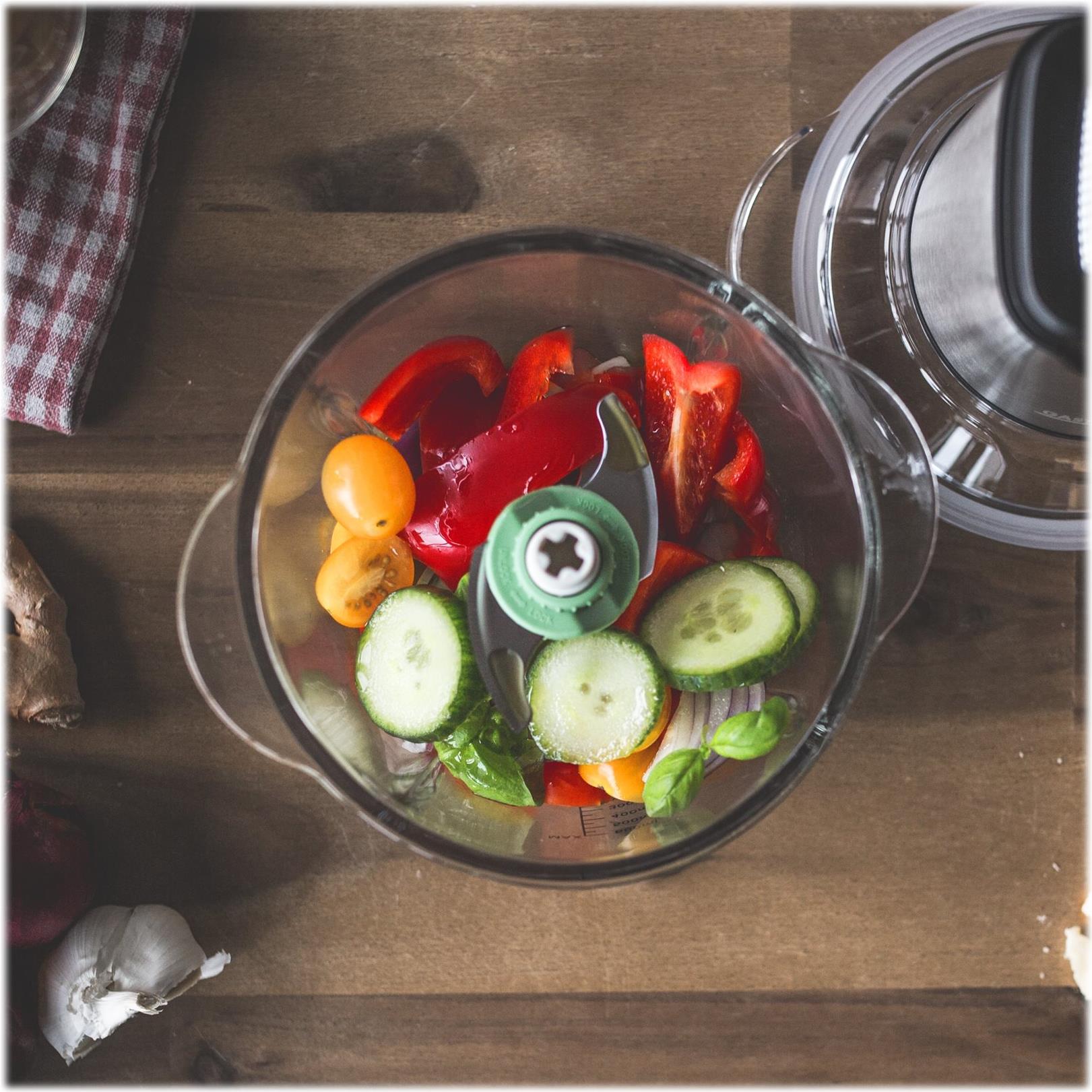 Zerkleinert in wenigen Sekunden Obst, Gemüse, Fleisch, Fisch und Nüsse. Sie können das Gerät mit 2-fach, 4-fach oder 6-fach Messern verwenden, um abhängig von Menge und Art der Lebensmittel die gewünschten Ergebnisse zu erhalten.
