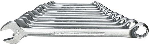 Gedore 6012840 Ring-Maulschlüssel-Satz 12teilig 6 - 19 mm Ring-Maulschlüssel-Satz 12tlg.Ringseite um 10° gekröpft und mit UD-Profil (Zwölfkant mit Wellenform). Ausführung nach DIN 3113 Form B.Technische Daten: DIN-Norm