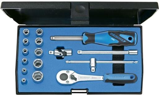 Gedore Steckschlüsselsatz 1/4\" (6.3 mm) 16teilig 6162220Steckschlüssel-Satz 1/4 16tlg.Steckschlüsselsatz mit geschmiedeten, vergüteten, handbetätigten 6-kant Steckschlüsseleinsätzen. Betätigungswerkzeuge aus GEDORE Vanadium-Stahl 31CrV3.
