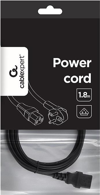 Das Gembird PC-186-VDE Stromkabel ist für eine zuverlässige und effiziente Leistung beim Anschluss von Geräten ausgelegt. Durch die vergossene Konstruktion und die Zugentlastung gewährleistet dieses Kabel eine lange Lebensdauer und einen geringen Verschleiß. Der um 90° abgewinkelte CEE 7/7-Stecker ermöglicht einen einfachen Zugang in engen Räumen, während der gerade IEC 60320 C13-Stecker eine Vielzahl von Geräten unterstützt. Dieses Netzkabel entspricht den VDE-Normen, was dem Benutzer Qualität und Sicherheit im Betrieb garantiert. Das Kabel ist in einem Polybeutel verpackt, was die Lagerung und den Transport erleichtert.