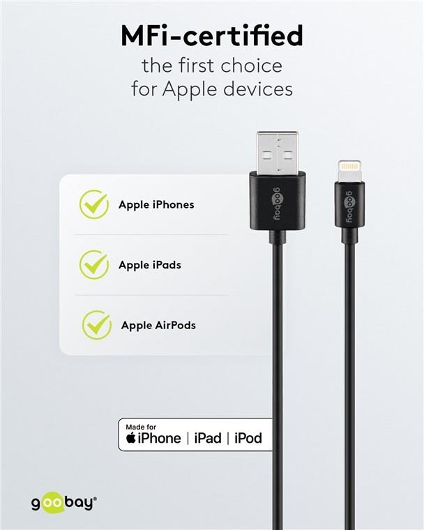Wentronic Goobay USB Lade- und Synchronisationskabel, Schwarz, 2 m - MFi Lade- und Synchronisationskabel für Apple iPhone/iPad (Schwarz) (72906)