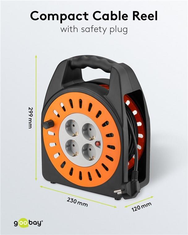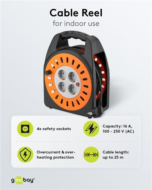 Wentronic Goobay Kabeltrommel 25 m - mit 4x Schutzkontakt-Steckdosen und Überlastschutz (71355)