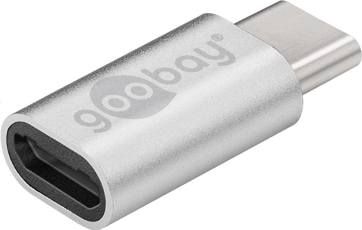 Wentronic Goobay USB-C™ Adapter - USB 2.0 Micro-B-Buchse, Silber - zum Verbinden eines USB-C™ Gerätes mit einem USB 2.0 Micro-B Kabel (56636)