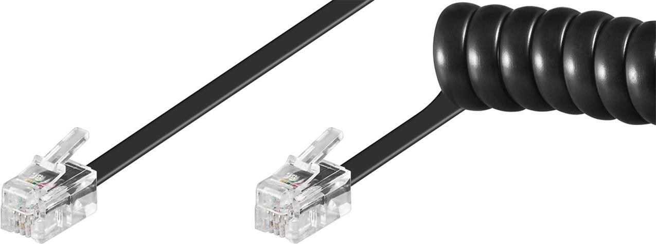 Wentronic Goobay Telefonhörer-Spiralkabel CCA (kupferkaschiertes Aluminium), Schwarz, 2 m - RJ10-Stecker (4P4C) auf RJ10-Stecker (4P4C) (50270)