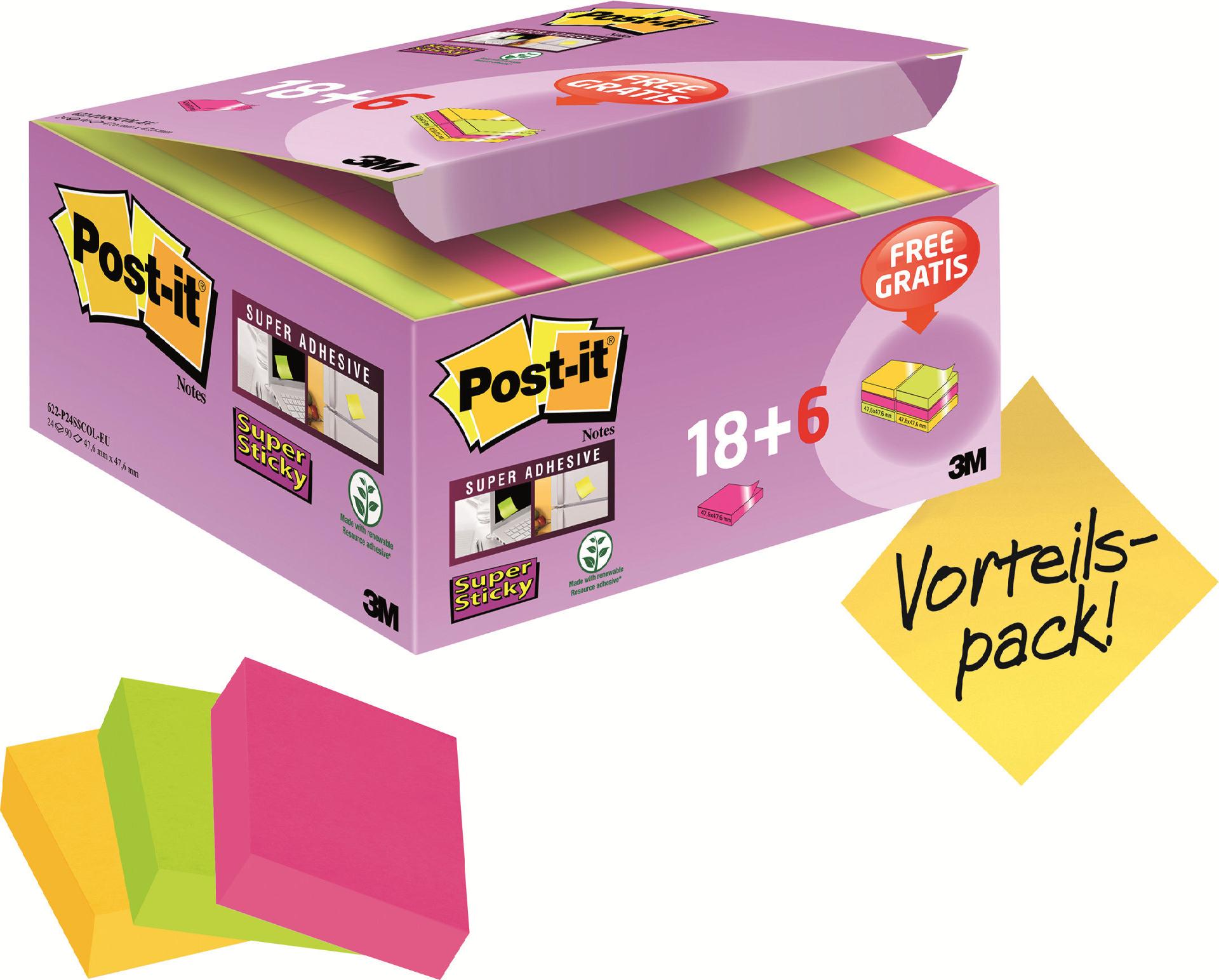 3M 62212SR Quadratisch Grün - Pink - Gelb 90Blätter Klebezettel (62212SR)