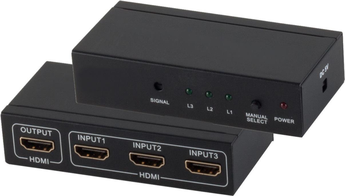 Schaltet zwischen 3 HDMI Signalen auf 1 Endgerät