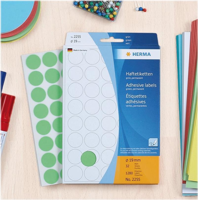 HERMA - Selbstklebende Mehrzweckpapieretiketten - weiß - 13 mm rund 2464 Etikett(en) (32 Bogen x 77) (2230)