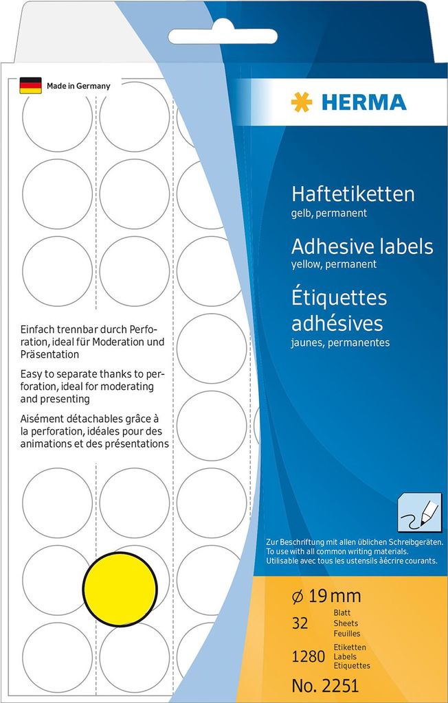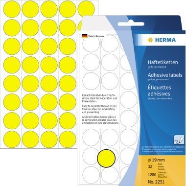 HERMA - Papier - matt - permanenter Klebstoff - Gelb - 19 mm rund 1280 Etikett(en) (32 Bogen x 40) Etiketten