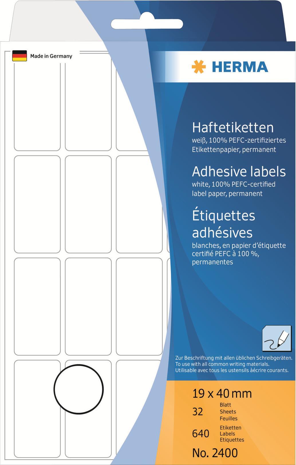 HERMA - Papier - selbstklebend - weiß - 19 x 40 mm 640 Etikett(en) (32 Bogen x 20) Etiketten