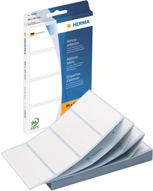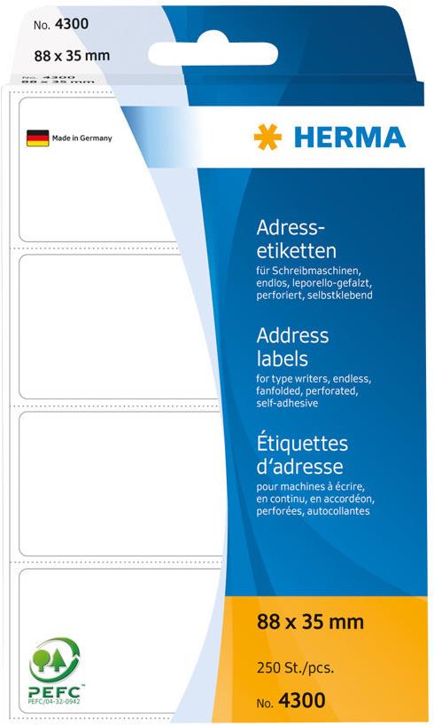 HERMA - Selbstklebende Papieretiketten - weiß - 88 x 35 mm - 250 Etikett(en) (4300)
