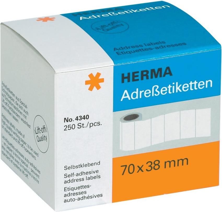 HERMA - Selbstklebende Adressenetiketten - 70 x 38 mm - 250 Etikett(en) (1 Rolle(n) x 250) - (4340)