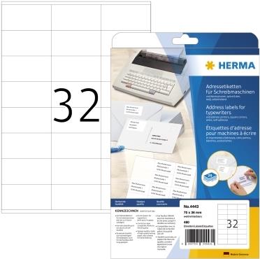 HERMA - Selbstklebende Adressetiketten (matt) - weiß - 70 x 36 mm - 480 Etikett(en) (20 Bogen x 24) - (4443)