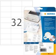Adressetiketten für Schreibmaschinen, auf A4-Blättern, Ecken spitz, selbstklebend. Zum Adressieren, zum Kennzeichnen von Akten, Behältern, Mustern, Fotos oder zum Überkleben. Aus hochwertigem, holzfreiem weißem Schreibpapier, deckende Qualität. Chlorfrei gebleicht, lösemittelfreier Haftkleber. Etikettenpapier PEFC-zertifiziert. Korrekturbandfreundlich durch Lift-Off-Qualität. Für Schreibmaschinen und Handbeschriftung. Nicht für PC-Beschriftung geeignet. Nutzen Sie dafür HERMA Premium A4 Etiketten.