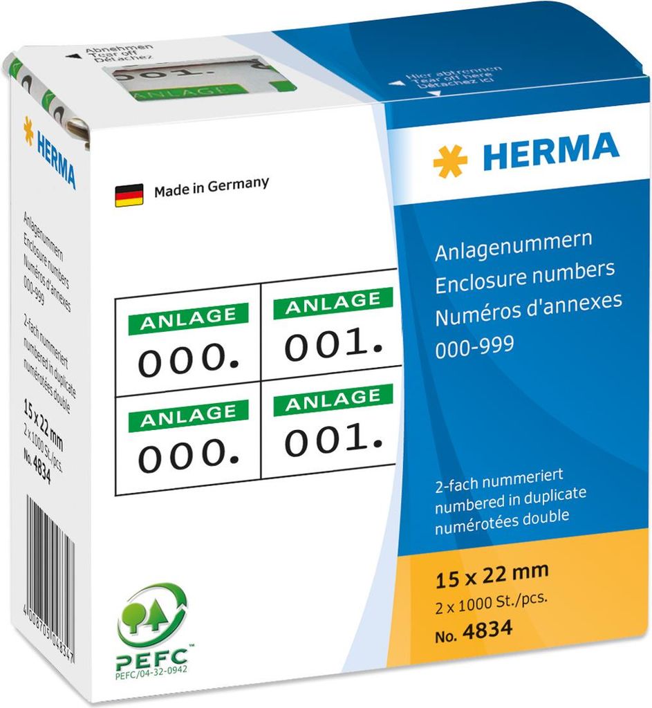 HERMA - Self-adhesive number labels - weiß, grün - 15 x 22 mm - 2000 Etikett(en) (1000 Bogen x 2) (4834)