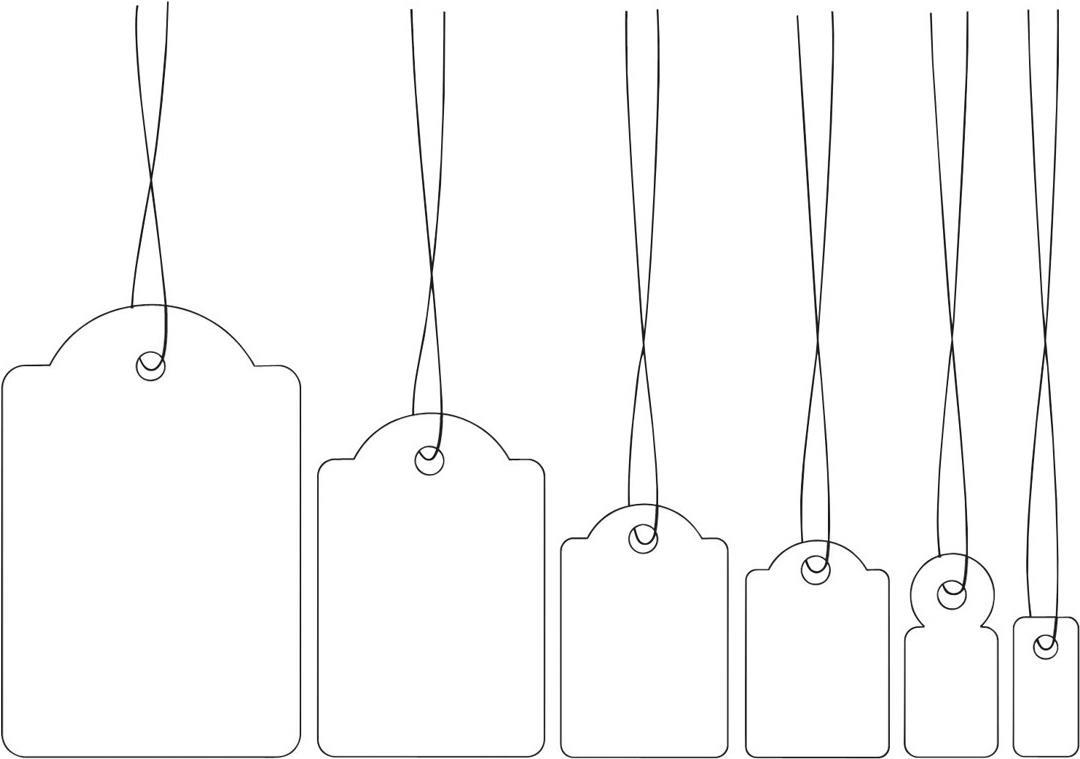 Weiße Hängeetiketten für die Preis- und Warenauszeichnung. Jeweils 1000 Etiketten pro Packung.