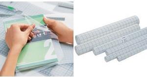 HERMA Buchschutzfolie, selbstklebend, 400 mm x 2 m transparent, glänzende Folie aus PP, Gitterlinien auf dem (7002)