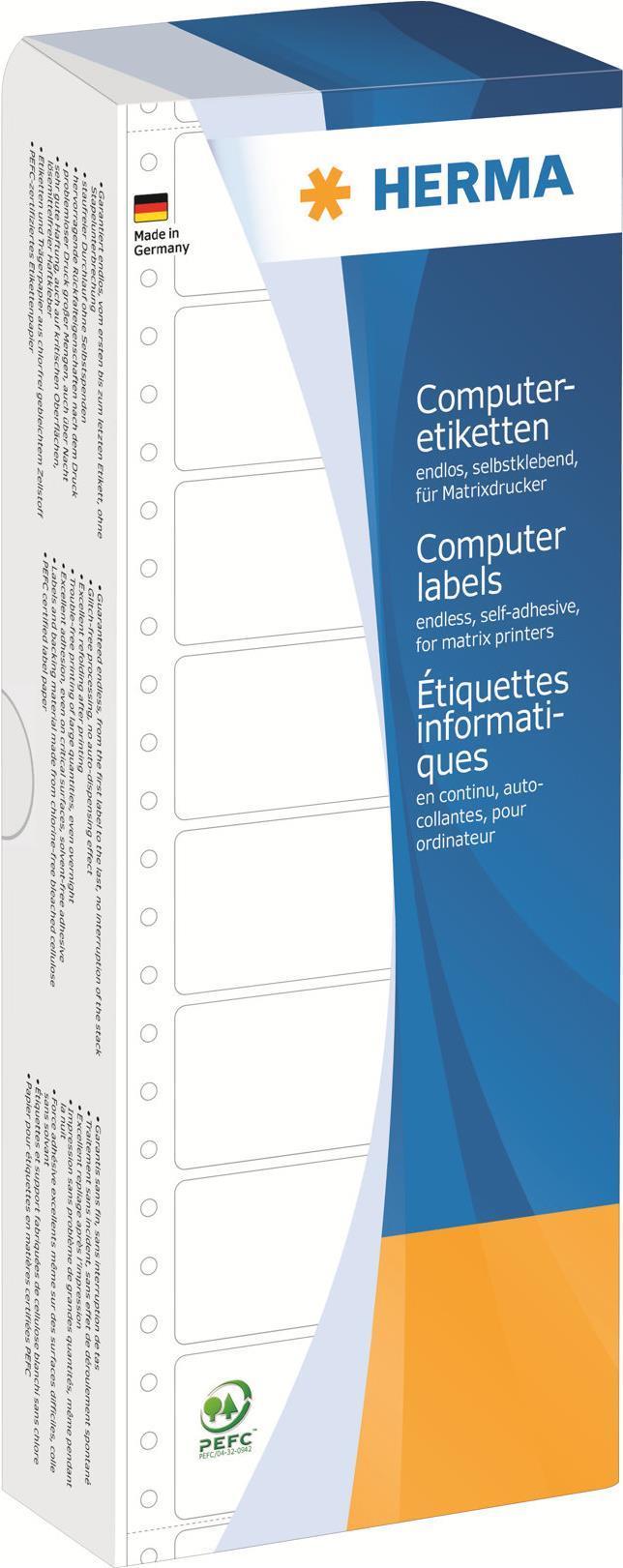 HERMA Computer labels - leporellogefaltete, perforierte, permanent selbstklebende, matte Endlospapieretiketten - 2000 Etikett(en) |