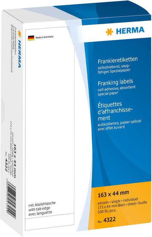 HERMA Franking labels - Self-adhesive matte paper labels - weiß - 163 x 44 mm - 500 Etikett(en) (500 Bogen x 1) (4322)