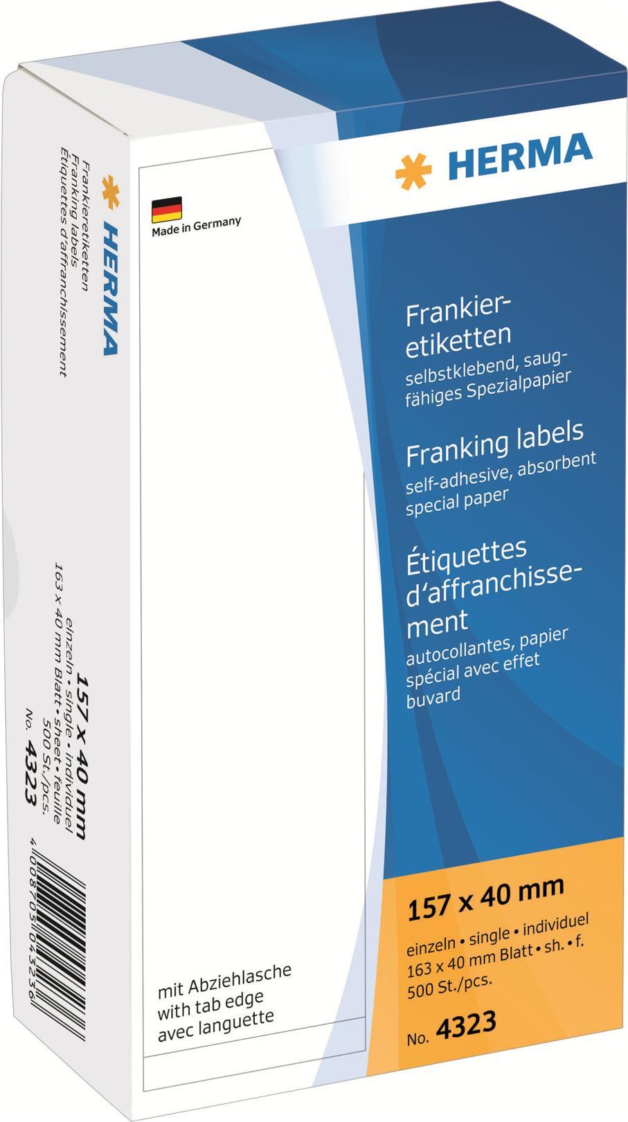 HERMA Franking labels - Self-adhesive matte paper labels - weiß - 157 x 40 mm - 500 Etikett(en) (500 Bogen x 1) (4323)
