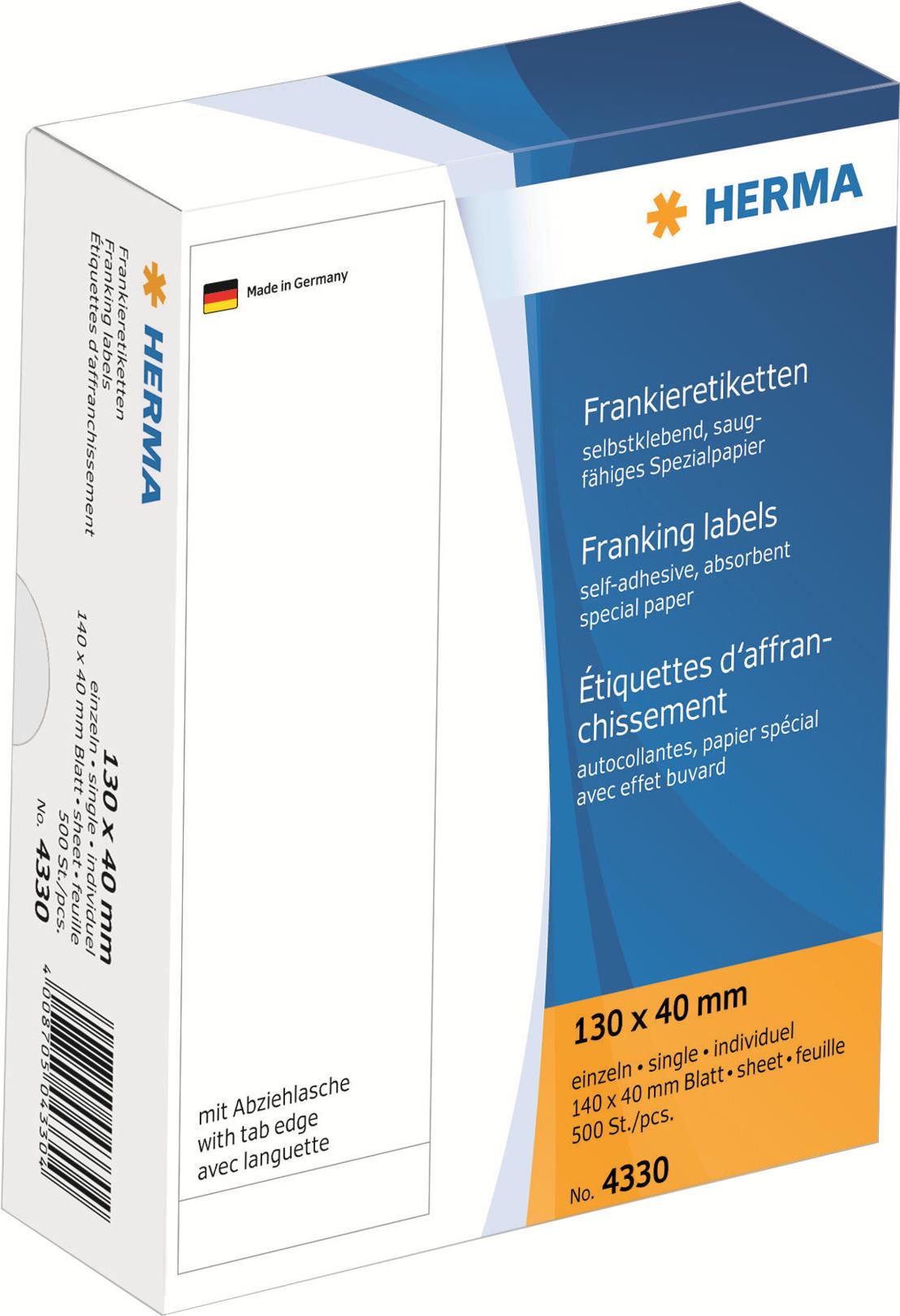 HERMA Franking labels - Selbstklebende Papieretiketten - weiß - 130 x 40 mm - 500 Etikett(en) (500 Bogen x 1) (4330)