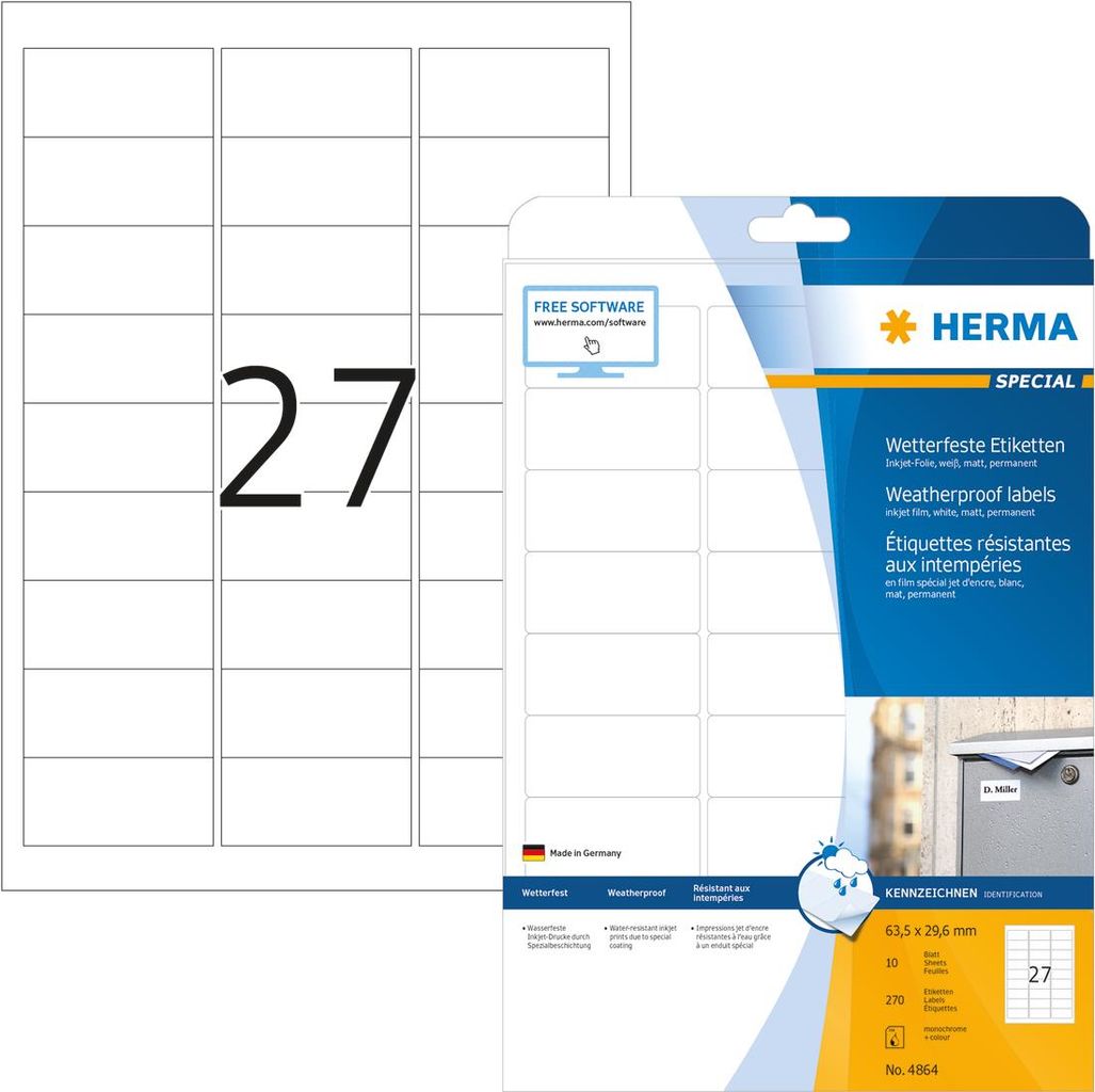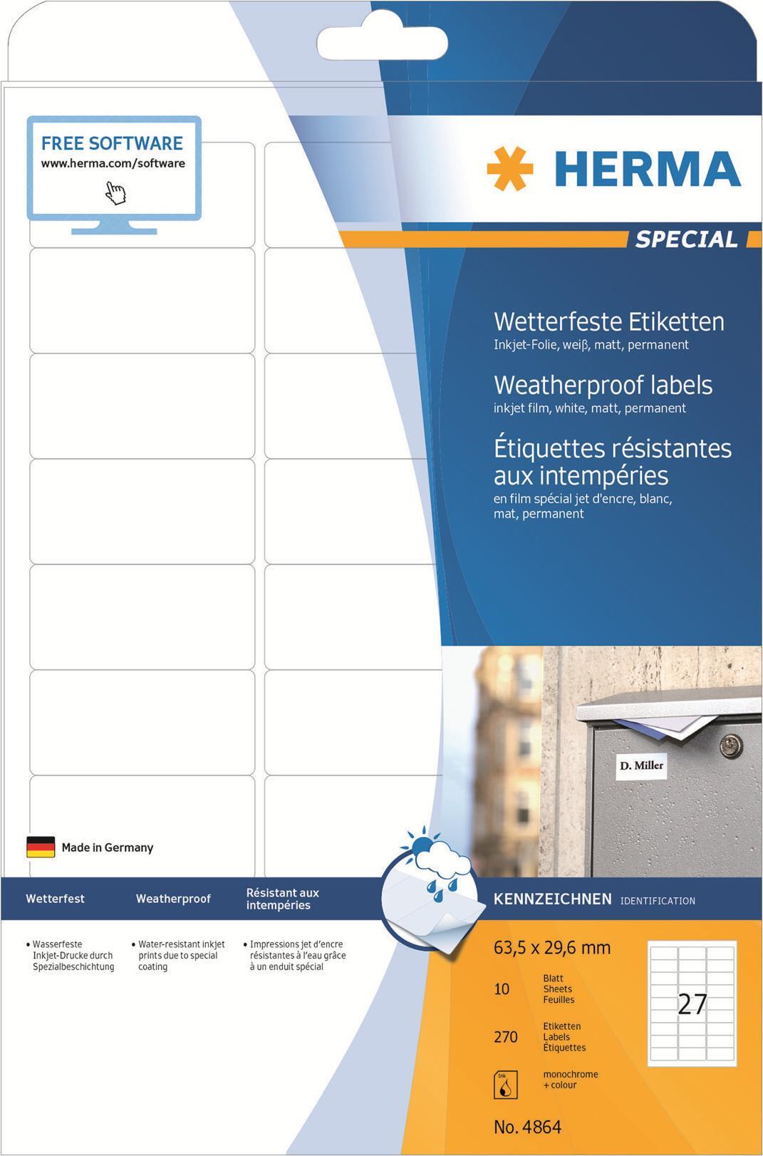 HERMA InkPrint - Folienetiketten - weiß - 29,6 x 63,5 mm - 270 Stck. (10 Bogen x 27) (4864)