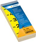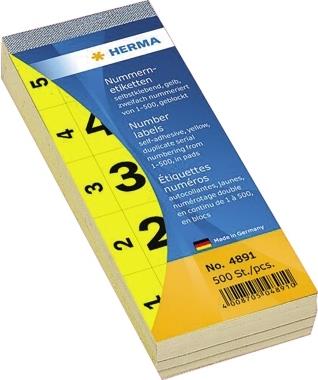HERMA Nummernblock, selbstklebend, 28 x 56 mm, gelb 1-500, 5 Nummern pro Blatt, 100 Blatt pro Block (4891)