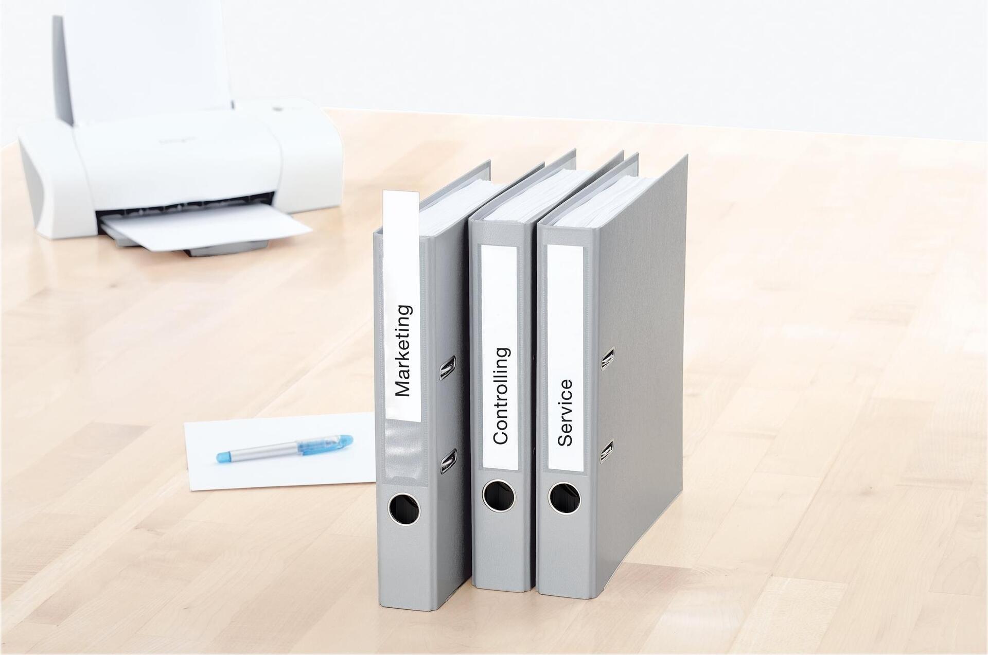 Einsteckrückenschilder aus Karton, für breite und schmale Ordner mit Einstecktasche/Sichtfenster. Für ein einheitliches Erscheinungsbild im Büro und Zuhause. Blanko: Ideal für Firmenlogo, Beschriftungen und Ordnungsvermerke. Hochweißer, gestrichener Spezialkarton mit hoher Deckkraft. Sauber trennbar durch Mikroperforation. Sehr gute Druckergebnisse auf allen Laserdruckern, Kopierern, Farblaserdruckern und Farbkopierern. Kostenlose Softwarelösungen: www.herma.de/software.