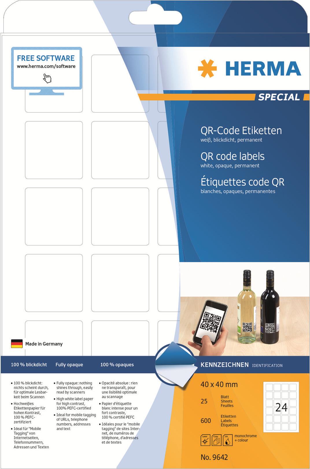 HERMA Special - Permanent selbstklebende, matte, lichtundurchlässige Aktenetiketten aus Papier - weiß - 40 x 40 mm 600 Etikett(en) (25 Bogen x 24) (9642)