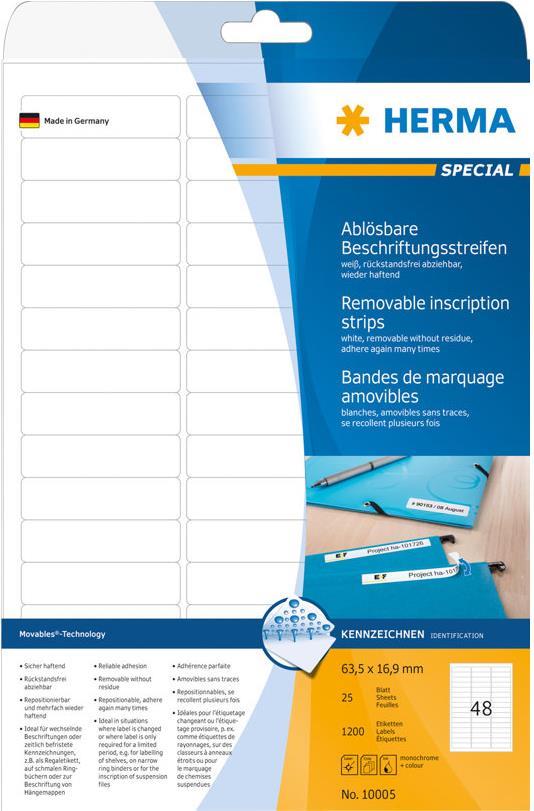 HERMA Special - Selbstklebende, abziehbare, matte Papieretiketten - weiß - 63,5 x 16,9 mm 1200 Etikett(en) (25 Bogen x 48) (10005)