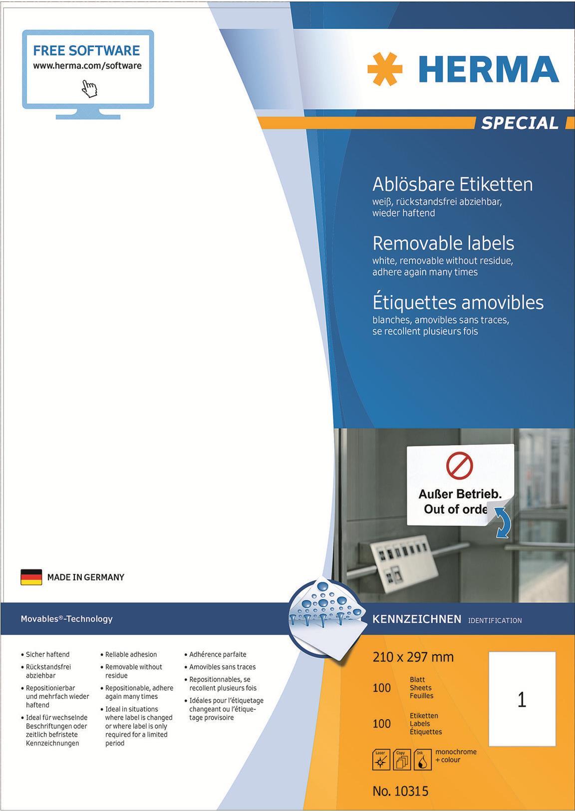HERMA Special - Selbstklebende, abziehbare, matte Papieretiketten - weiß - A4 (210 x 297 mm) - 100 Etikett(en) (10315)
