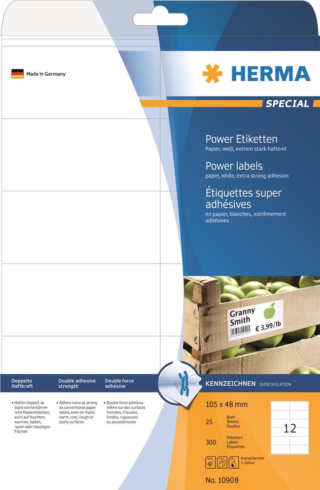 HERMA Special - Extra starke, selbstklebende, matte Papieretiketten - weiß - 105 x 48 mm - 300 Etikett(en) (25 Bogen x 12) (10908)