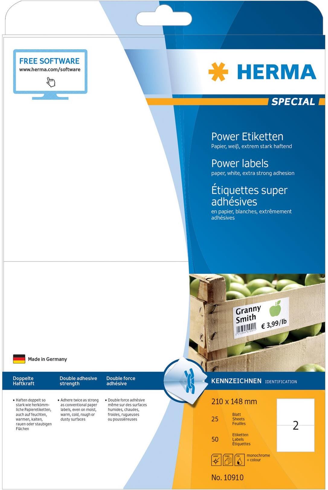 HERMA Special - Extra strength self-adhesive matte paper labels - weiß - 210 x 148 mm - 50 Etikett(en) (25 Bogen x 2) (10910)