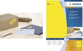 Farbige Etiketten auf A4-Blättern, selbstklebend. Ideal für Kennzeichnungen mit Signalcharakter, z. B. Warnhinweise, Eilvermerke, Adressänderungen, Farbcodierung, Aktionen,... Umweltfreundlich: FSC Mix Credit-zertifiziertes Etikettenpapier, chlorfrei gebleicht, lösemittelfreier Haftkleber. Etiketten sind 100 % recyclingfähig mit dem Altpapier, Verpackung aus Recyclingkarton. Sehr gute Druckergebnisse auf allen Laser- und Inkjetdruckern, Kopierern, Farblaserdruckern und Farbkopierern. Störungsfreie Verarbeitung durch Rundum-Sicherheitskante und optimale Planlage. Kostenlose Softwarelösungen: www.herma.de/software.