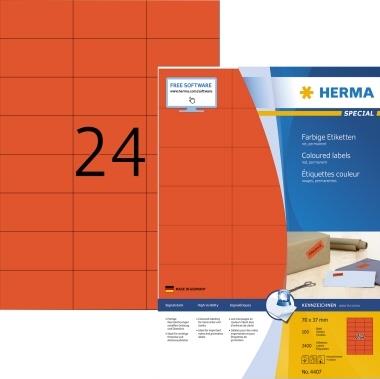 HERMA Special - Permanent selbstklebende, matte Papieretiketten - Rot - 70 x 37 mm - 2400 Etikett(en) (100 Bogen x 24) (4407)