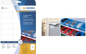 Weiße matte Folien-Etiketten auf A4-Blättern, selbstklebend. Ideal für stark beanspruchte Etikettierungen und im Außenbereich: Eigentumsetiketten, Schaufensteraufkleber, Hinweis- und Warnschilder, Kennzeichnungen in Lager und Produktion. Strapazierfähige wetterfeste Oberfläche, besonders stark haftend, UV- und alterungsbeständig, Öl und Schmutz abweisend, abwaschbar, temperaturbeständig von -30 bis +80 °C, seewasserfest. Störungsfreie Verarbeitung durch Rundum-Sicherheitskante und optimale Planlage. Für Laserdrucker und Kopierer, Farblaserdrucker und Farbkopierer. Nicht für Inkjetdrucker geeignet. Kostenlose Softwarelösungen: www.herma.de/software.