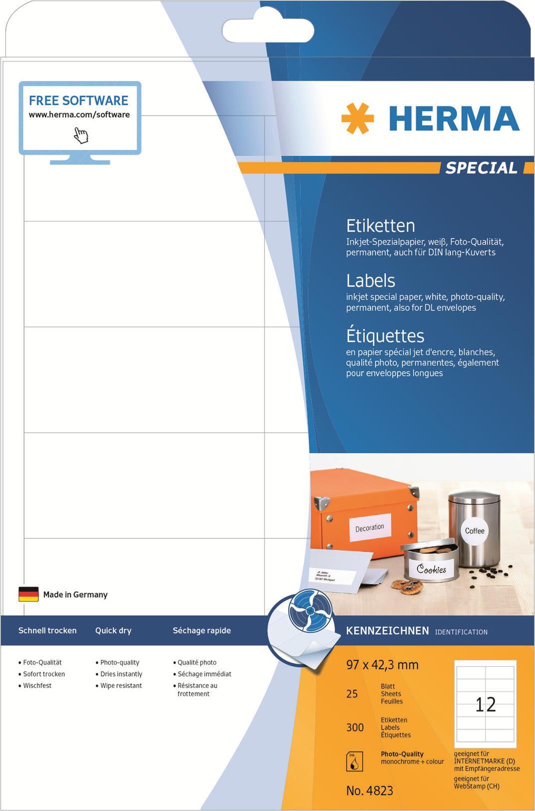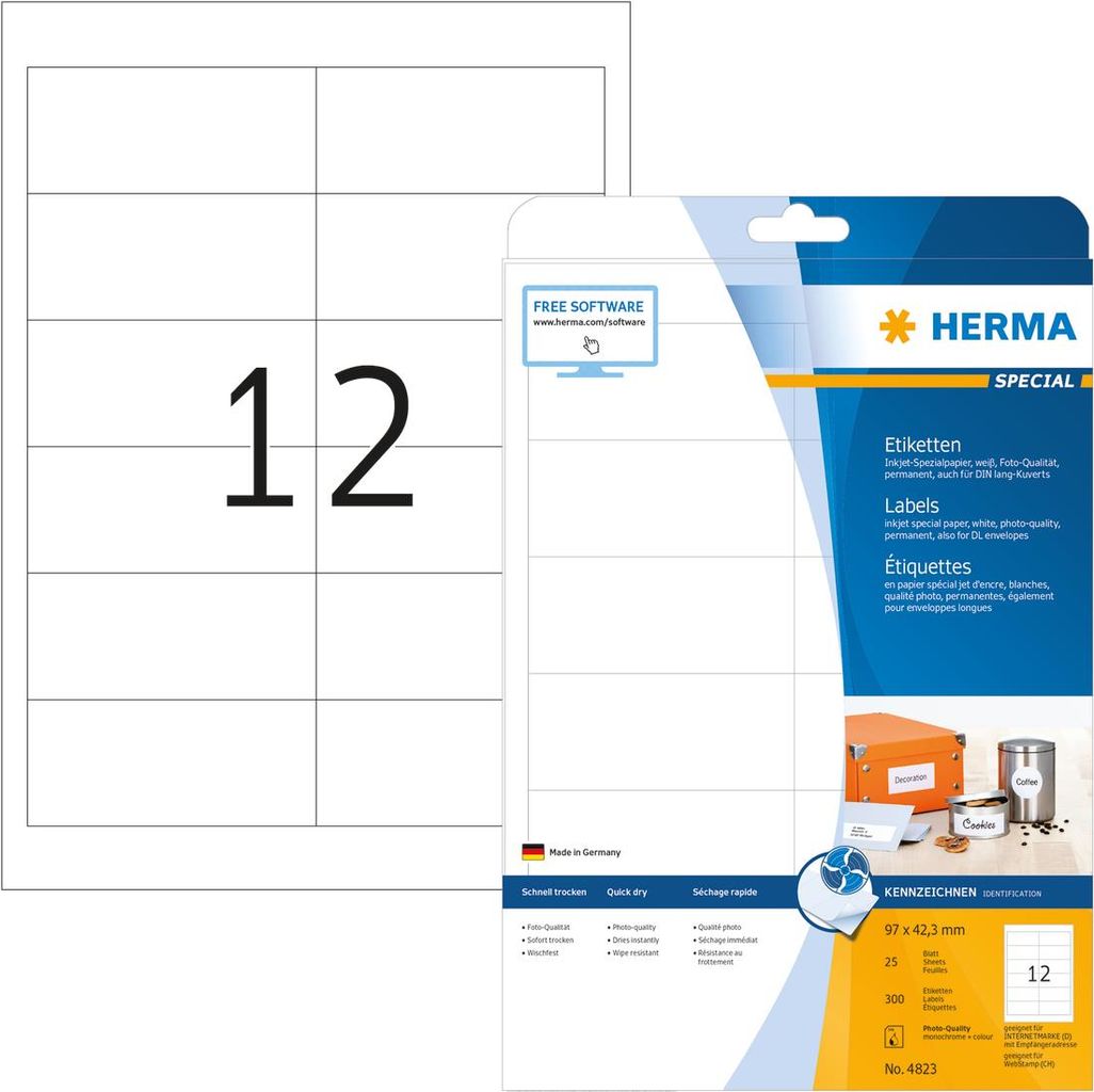 HERMA Special - Permanent selbstklebende, matte, beschichtete Papieretiketten - weiß - 97 x 42,3 mm - 90 g/m2 - 300 Etikett(en) (25 Bogen x 12) (4823)
