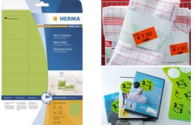 Etiketten in Neonfarben für Informationen mit Signalwirkung, auf A4-Blättern, selbstklebend. Auffallend und informativ: ideal für Kennzeichnungen mit Signalcharakter, z. B. Warnhinweise, Eilvermerke, Aktionen, Farbcodierungen,... In 4 signalstarken Neonfarben, FSC Mix Credit-zertifiziert. Für Laser- und Inkjetdrucker, Kopierer, Farblaserdrucker und Farbkopierer geeignet. Störungsfreie Verarbeitung durch Rundum-Sicherheitskante und optimale Planlage. Kostenlose Softwarelösungen: www.herma.de/software.