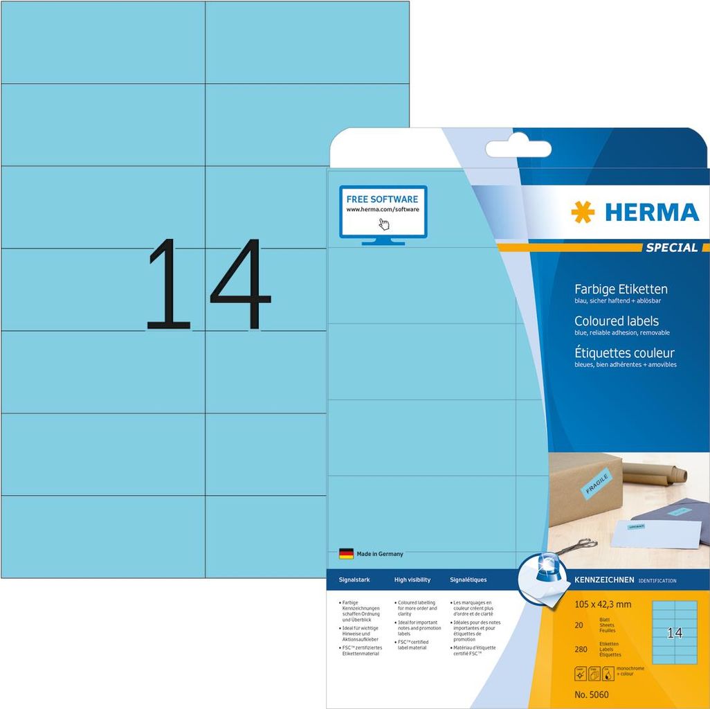 HERMA Special - Permanent selbstklebende, matte Papieretiketten - Blau - 105 x 42,3 mm - 280 Etikett(en) (20 Bogen x 14) (5060)