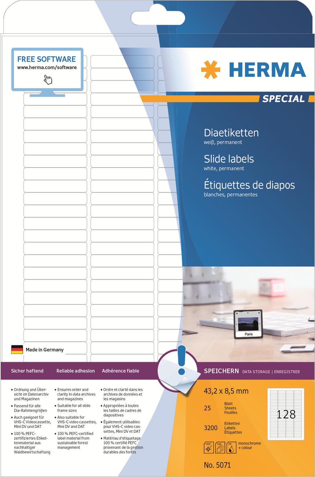 HERMA Special - Permanent selbstklebende, matte Diaetiketten aus Papier - weiß - 43,2 x 8,5 mm - 3200 Etikett(en) (25 Bogen x 128) (5071)