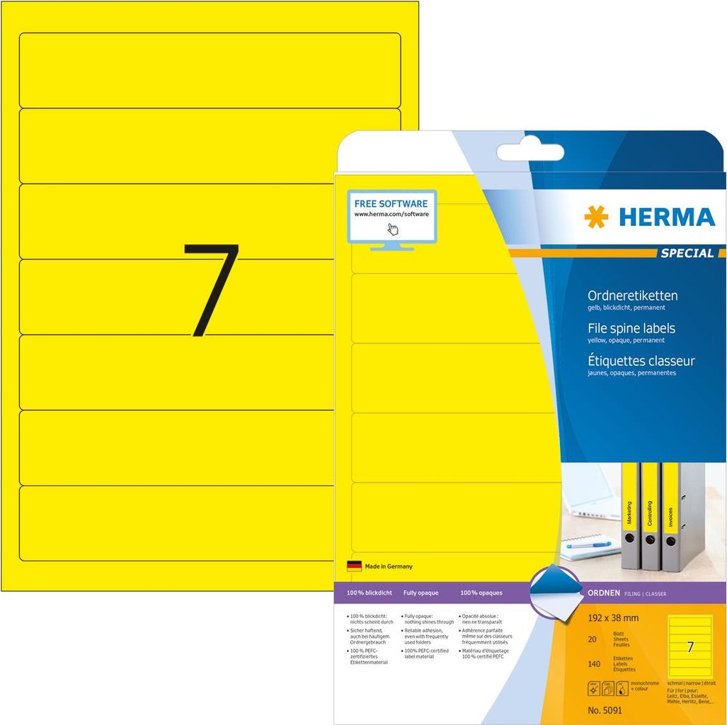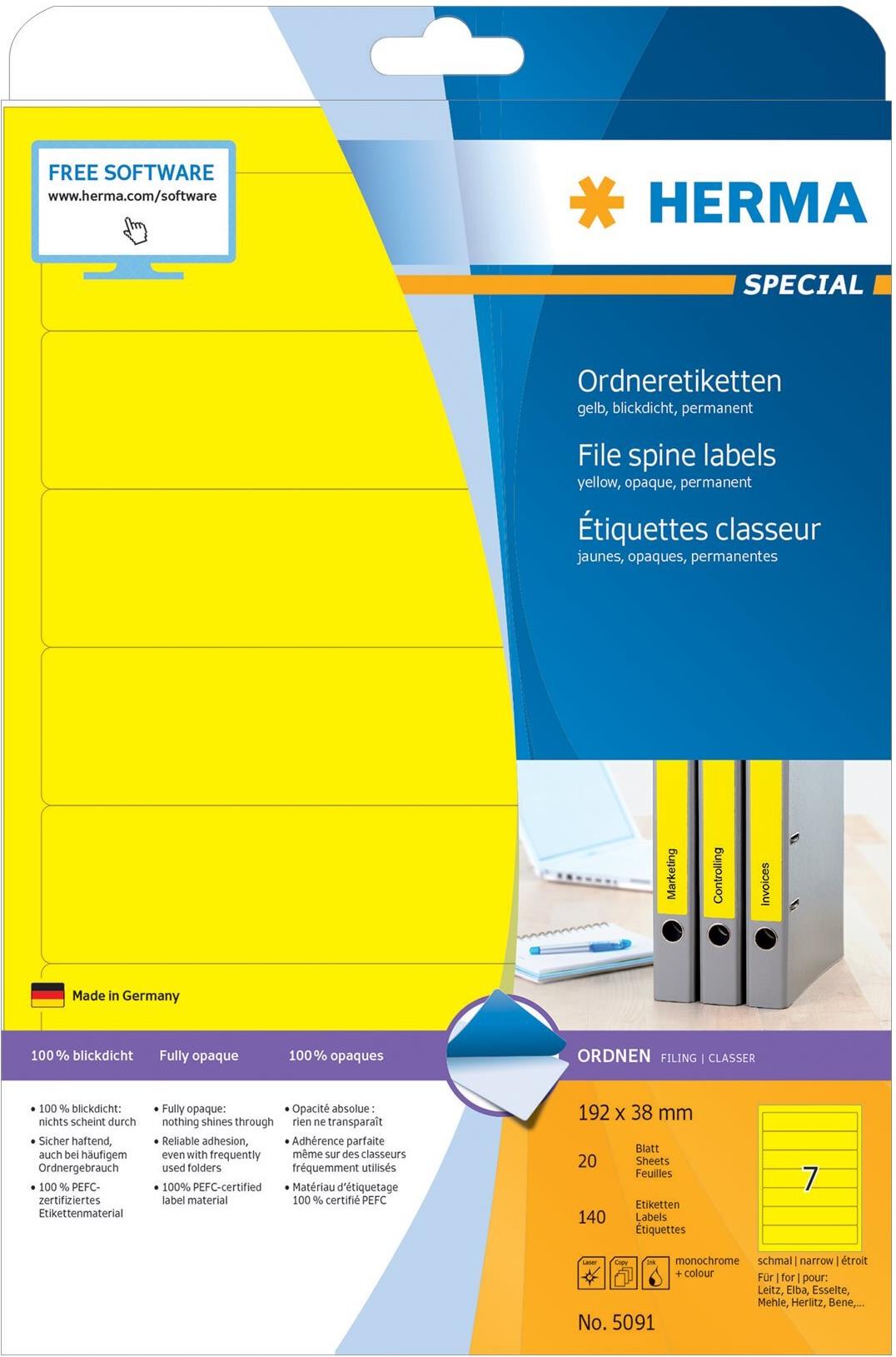 HERMA Special - Permanent self-adhesive matte opaque file folder paper labels - Gelb - 192 x 38 mm - 175 Etikett(en) (25 Bogen x 7) (5091)