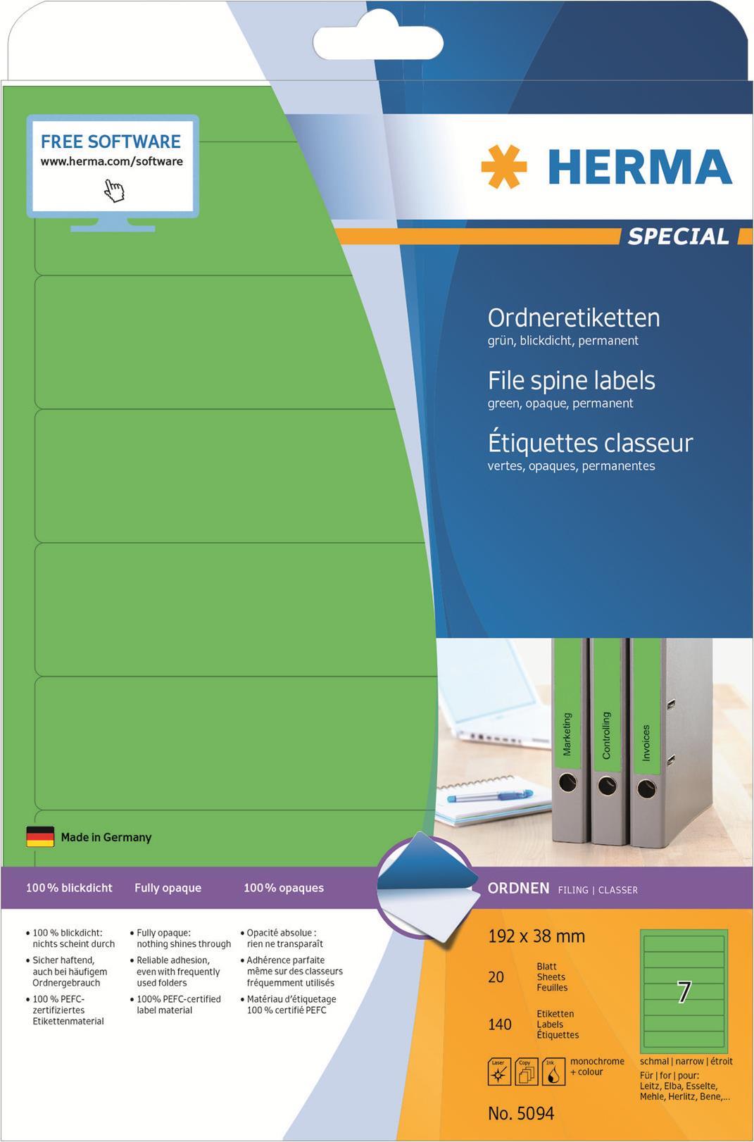 HERMA Special - Permanent self-adhesive matte opaque file folder paper labels - grün - 192 x 38 mm - 175 Etikett(en) (25 Bogen x 7) (5094)