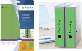 Ordneretiketten auf A4-Blättern, selbstklebend. Für ein einheitliches Erscheinungsbild im Büro und Zuhause. Für alle gängigen Ordner geeignet. Absolut blickdichtes Material, alte Ordnerbeschriftungen scheinen nicht durch. Blanko: Ideal für Firmenlogo, Beschriftungen und Ordnungsvermerke. Sicher haftend, auch bei häufigem Ordnergebrauch. Umweltfreundlich: hochwertiges, chlorfrei gebleichtes Spezialpapier, PEFC-zertifiziert, lösemittelfreier Haftkleber. Etiketten sind 100 % recyclingfähig mit dem Altpapier, Verpackung aus Recyclingkarton. Sehr gute Druckergebnisse auf allen Laser- und Inkjetdruckern, Kopierern, Farblaserdruckern und Farbkopierern. Störungsfreie Verarbeitung durch Rundum-Sicherheitskante und optimale Planlage. Kostenlose Softwarelösungen: www.herma.de/software.